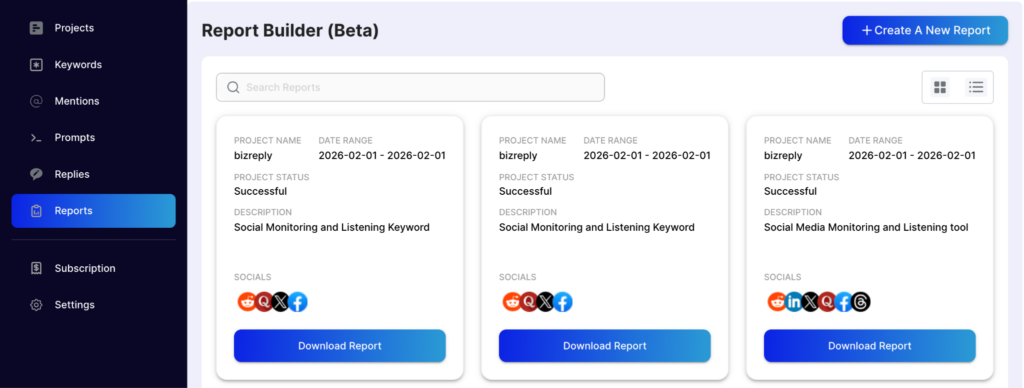 Reports give you a clear summary of all the replies and engagement you’ve done. You can share these with your clients or project admins to show the work you’ve completed.